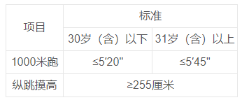 男子1000米跑项目的测评次数为1次,纵跳摸高的测评次数不超过3次。凡其中一项不达标的,视为体能测评不合格。体能测评不组织补测,体能测评不合格的,不能进入面试和体检。
