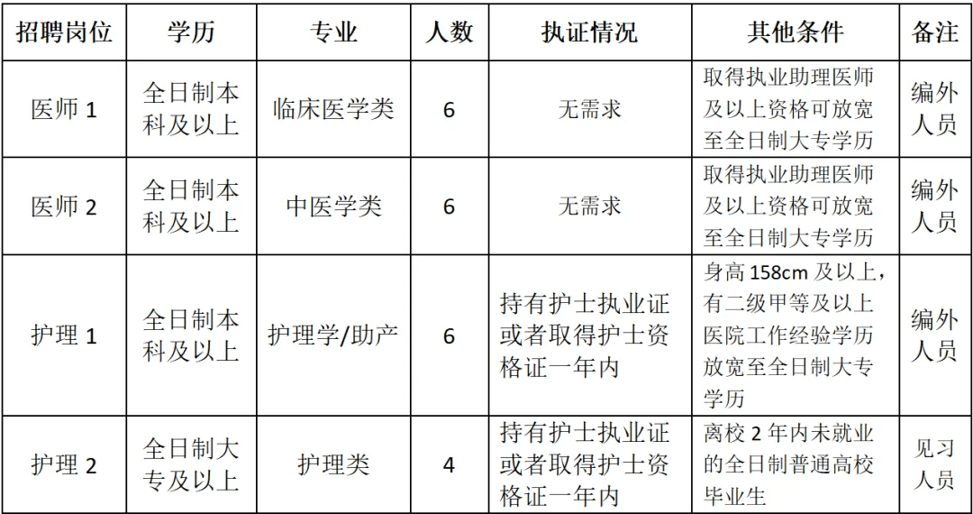 6.年龄18-35周岁,具有执业医师资格可放宽至40周岁;具有主治医师职称可宽至45周岁。