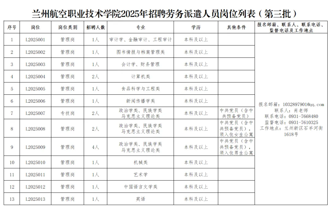 附件1兰州航空职业技术学院2025年招聘劳务派遣人员岗位列表第三批.xlsx