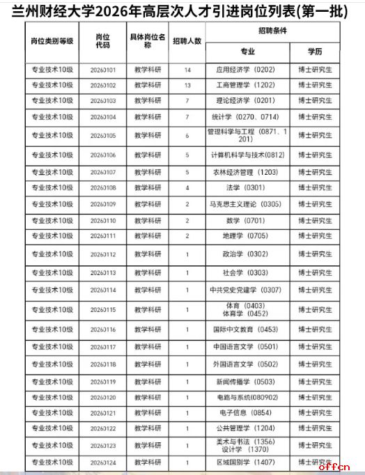 - 2026年甘肃省兰州财经大学高层次人才引进80人公告(第一批) 2026-02-03
