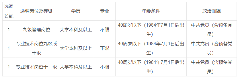 公开选调岗位表