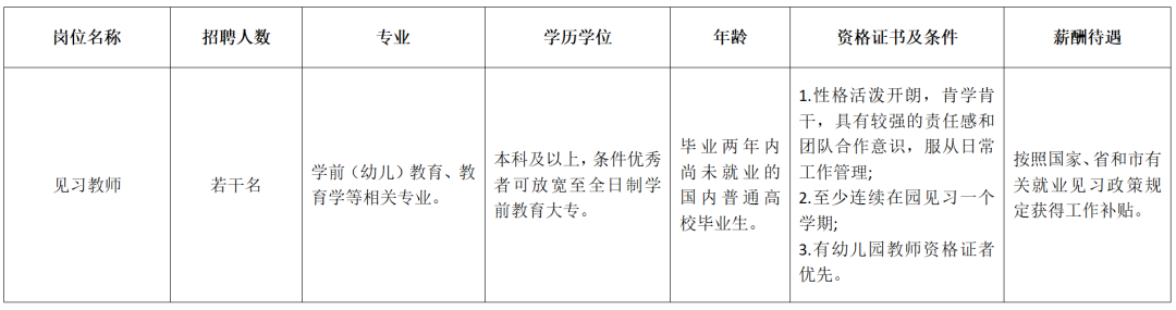应聘者须遵纪守法,品行端正;身体健康,具有履行岗位职责的身体条件和专业技能;热爱幼教事业,积极向上,团结合作;无违法犯罪记录,无精神病史,无违反师德师风记录,无违反国家相关法律法规。