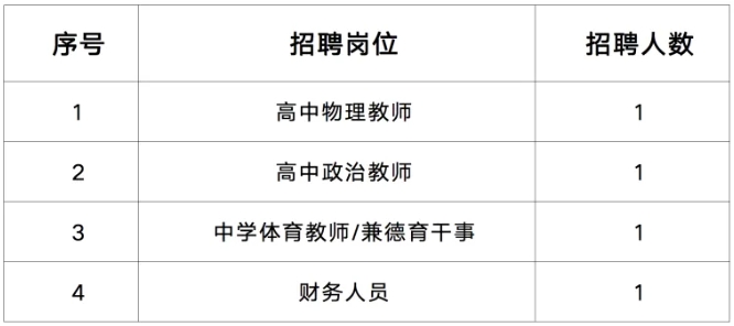 根据学校教育教学发展需要,现面向社会公开招聘编外教职工4名,欢迎广大热爱教育事业、胸怀教育理想的优秀人才报名参加。