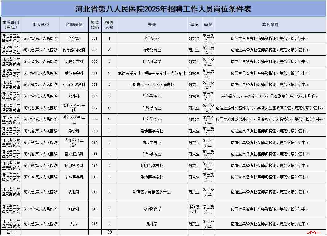 2025年河北省第八人民医院招聘工作人员20名公告-九游网址