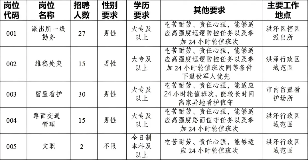 - 淮安市公安局洪泽分局警务辅助人员招聘89人公告 2025-08-04