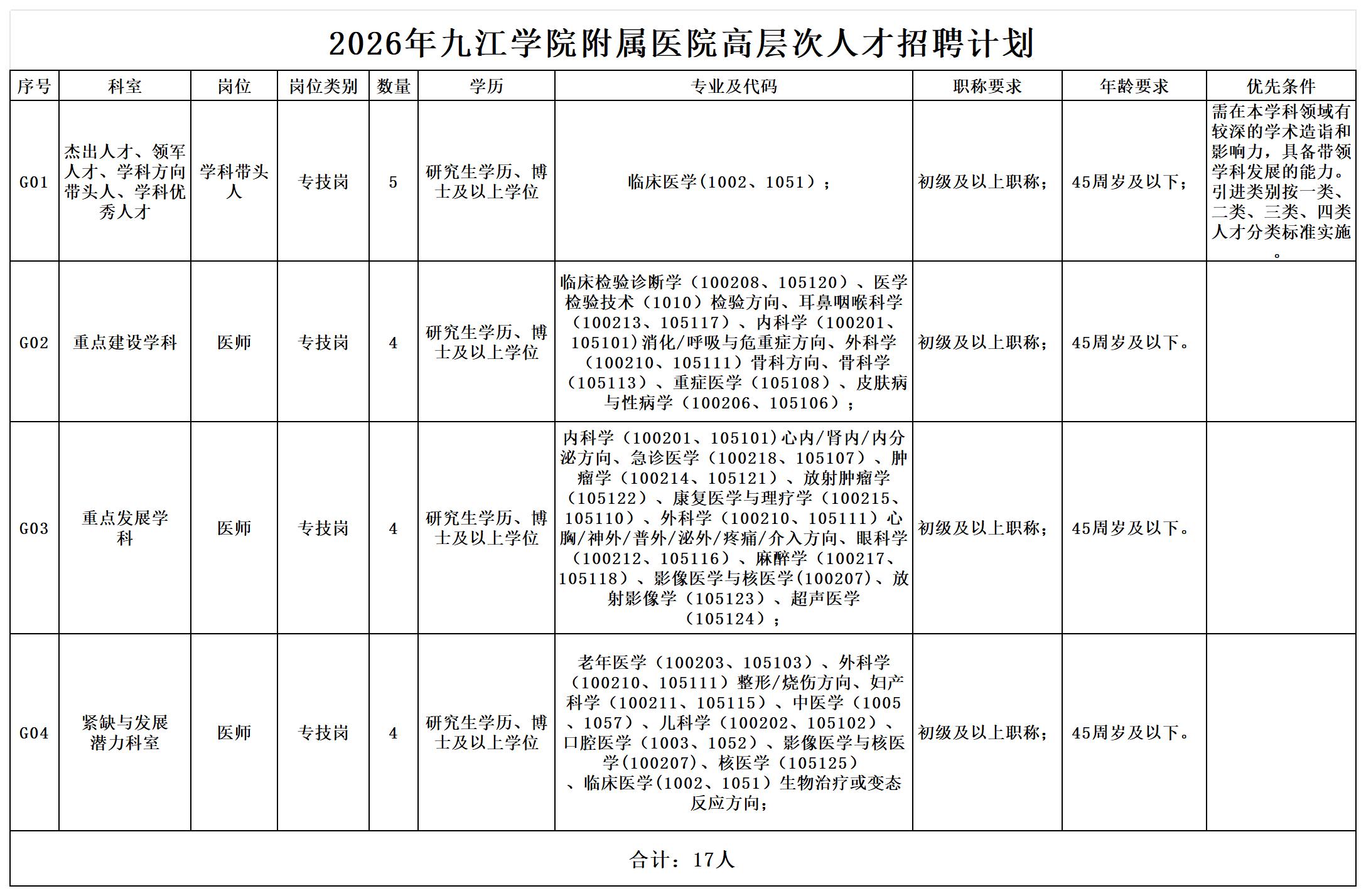 - 2026年九江学院附属医院九游网址的人才招聘54人公告 2026-02-04