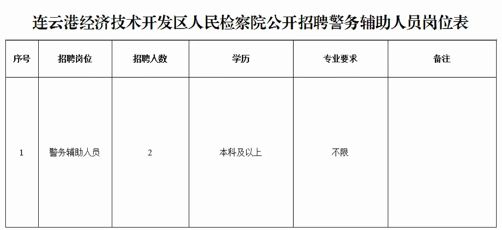 - 连云港经济技术开发区人民检察院招聘2名警务辅助人员公告 2025-08-21