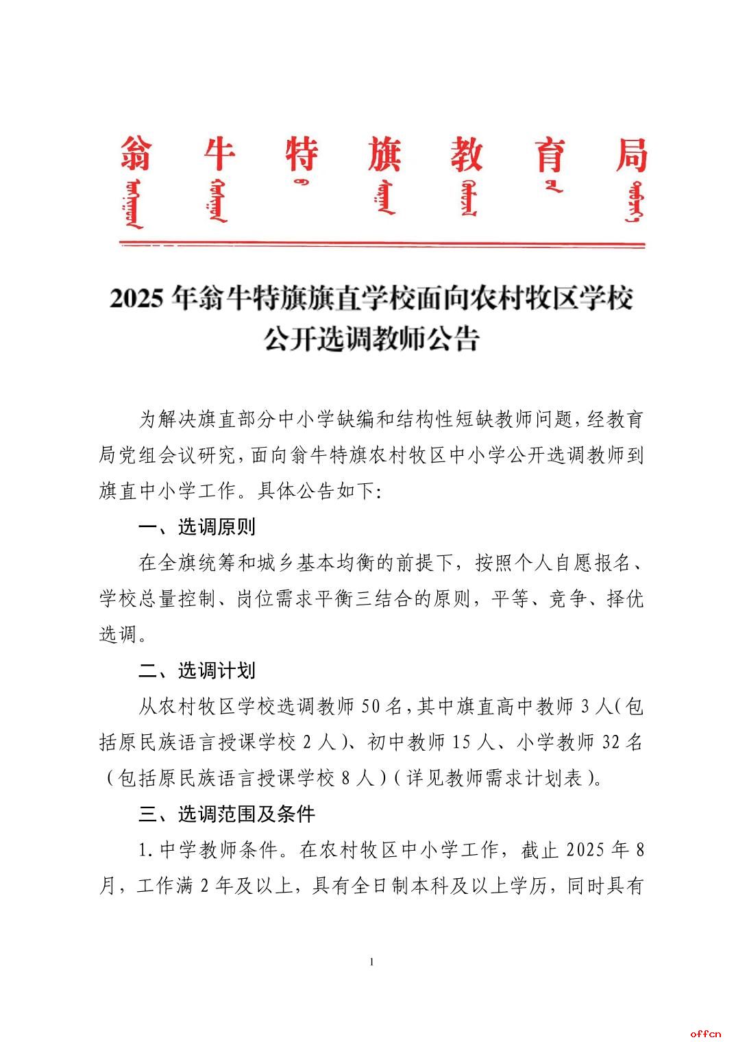 2025赤峰市翁牛特旗旗直学校面向农村牧区学校选调50名教师公告-九游网址