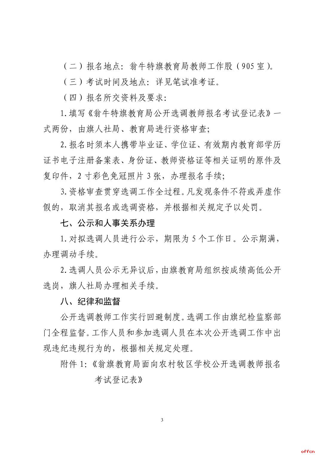 附件信息:附件1:翁旗教育局面向农村牧区学校公开选调教师报名登记表.xls