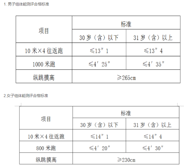 (二)体能测评结果。体能测评只判定是否合格,不计入总成绩。体能测评合格人员进入笔试环节。