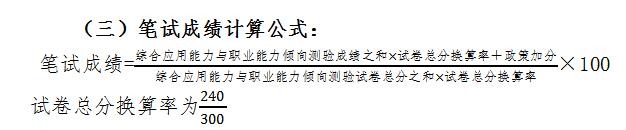 (二)笔试科目和权重。笔试科目包括《职业能力倾向测验》和《综合应用能力》两科,《综合应用能力》分为综合管理类(a类)、社会科学专技类(b类)和自然科学专技类(c类)。试卷满分各为150分,总分300分。
