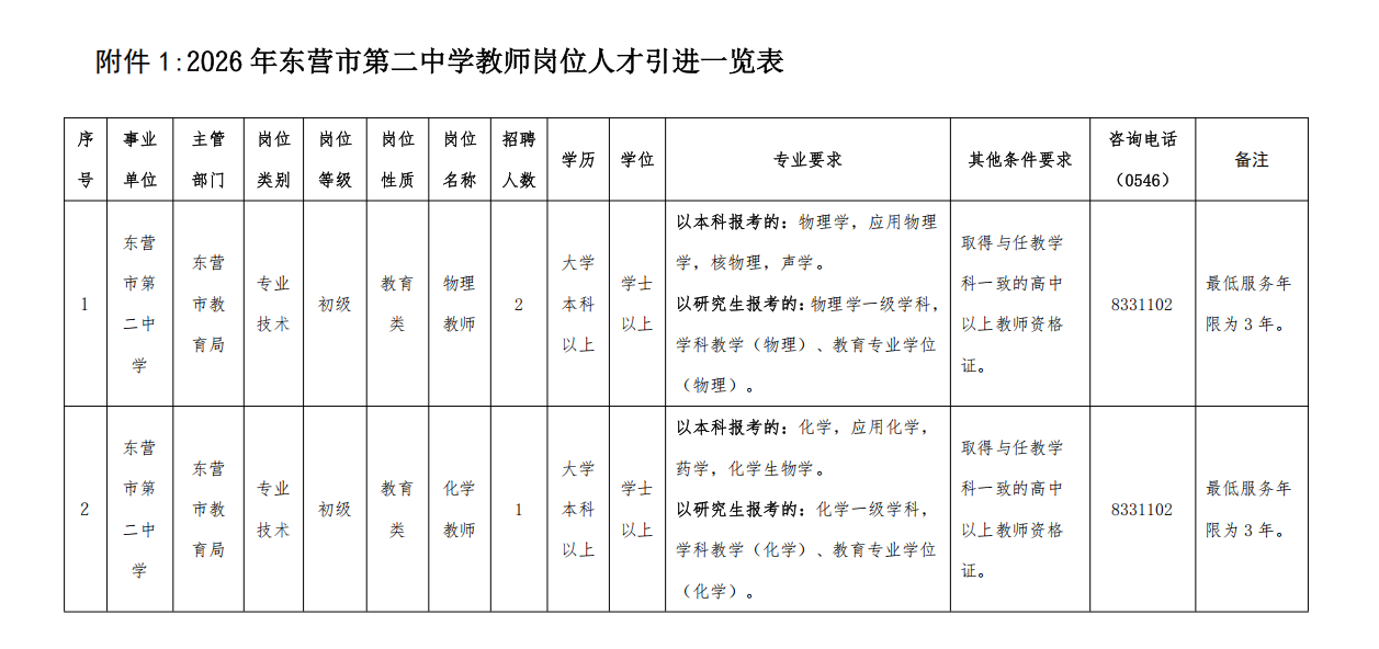 根据事业单位公开招聘有关规定,结合学校教育教学需求,现将2026年东营市第二中学教师岗位人才引进工作有关事项公告如下: