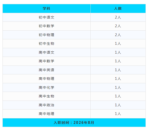全日制本科及以上学历;年龄不超过45周岁;热爱教育事业;研究生、三届毕业班教学经验及以上优先录用。