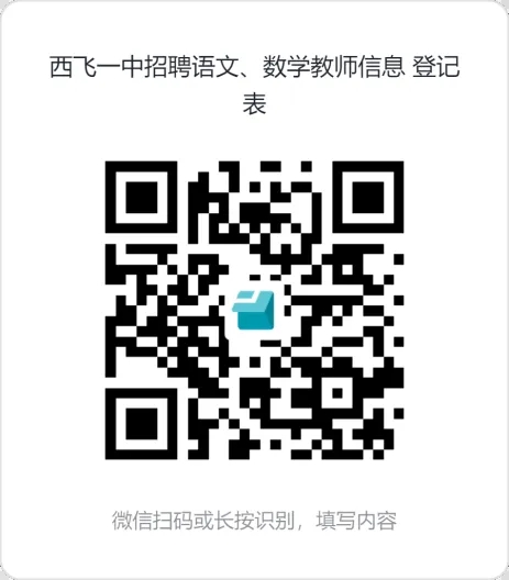 长按或扫描下方二维码,填写并提交《西飞一中招聘语文、数学教师信息登记表》。