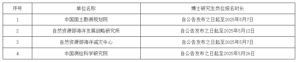 不参加统一笔试岗位(适用于不参加统一笔试且不使用自然资源部所属企事业单位公开招聘报名平台的博士研究生岗位):