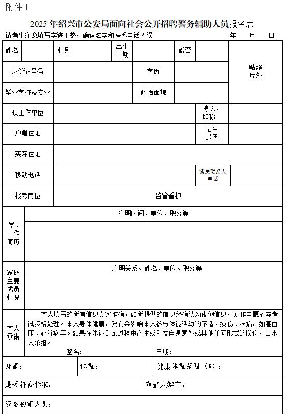 2025年绍兴市公安局公开招聘警务辅助人员公告如下:
