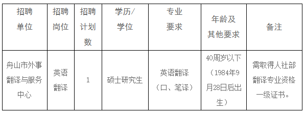 - 2025年舟山市人民政府外事办公室下属事业单位招聘公告 2025-09-29